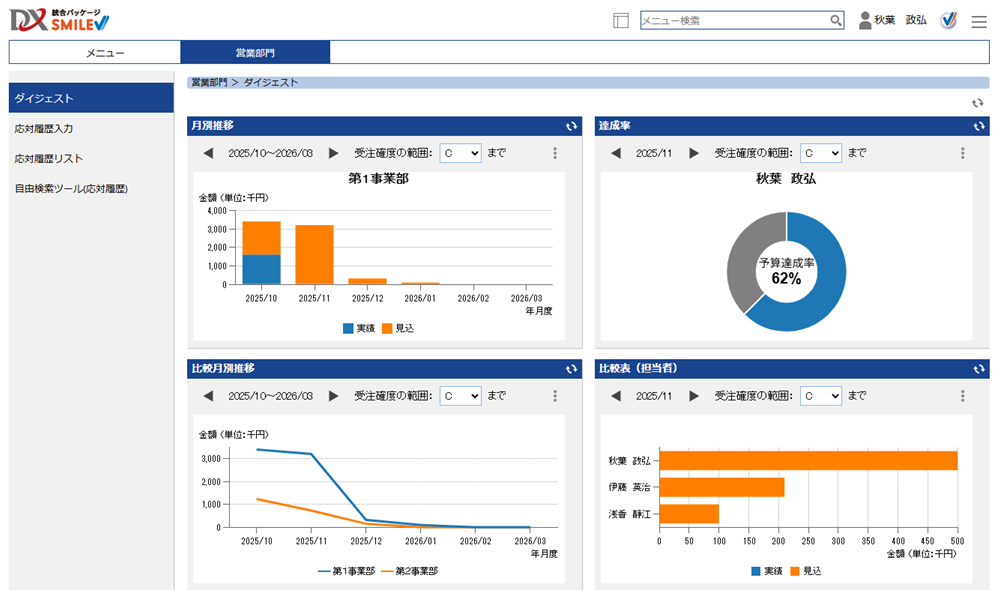 予実績はポータル画面にグラフで表示することができるので、ひと目で進捗状況を把握することができます。