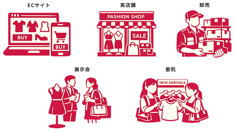 卸・委託(消化)・直営・EC・催事など、アパレル特有のマルチな販売チャネルを一元管理します。