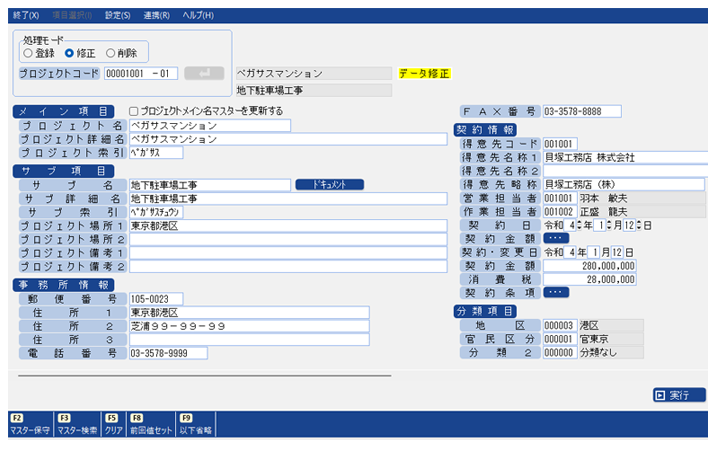 受注案件の契約内容、工期、施工場所などの情報をマスターデータとして一元管理します。