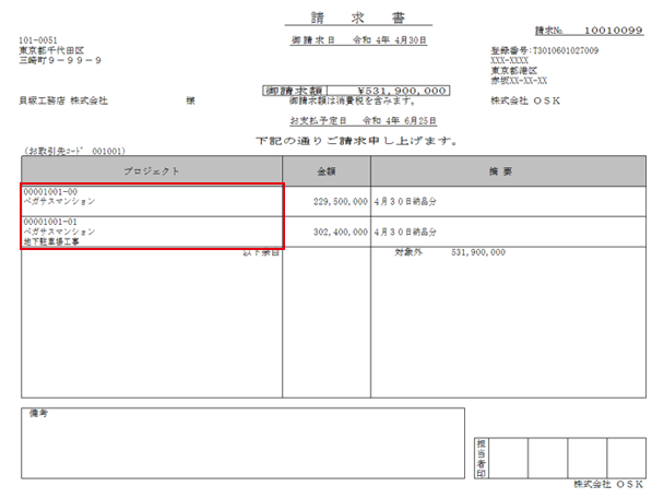 現場別請求書の発行