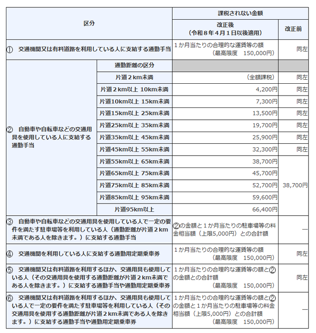 非課税通勤手当の限度額は、2025年、2026年の2回にわたり改正されています。改正時期とその内容を整理してみましょう。
