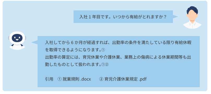 例えば、チャットのように話し言葉や書き言葉で質問を投げかけると、質問の意図をくみ取り、関連する文書を検索し、さらに該当する文書の要約も表示してくれます。このように、関連する情報を含めて、必要な情報をわかりやすく整理する作業まで自動化されます。