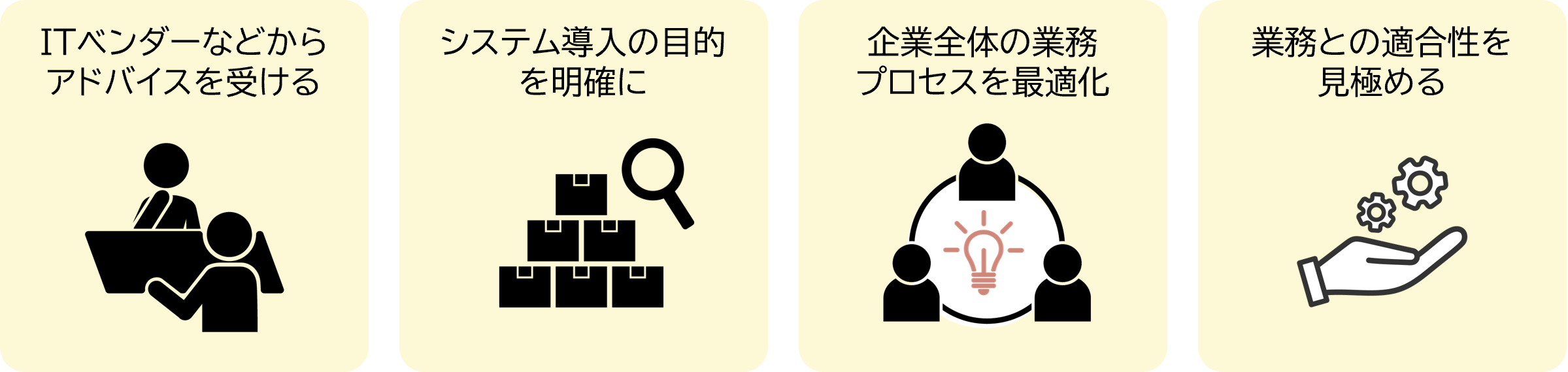 注意点を確認したら、次は選定を成功に導くための具体的な取り組みです。以下のポイントを参考に、最適なシステム選びを目指しましょう。